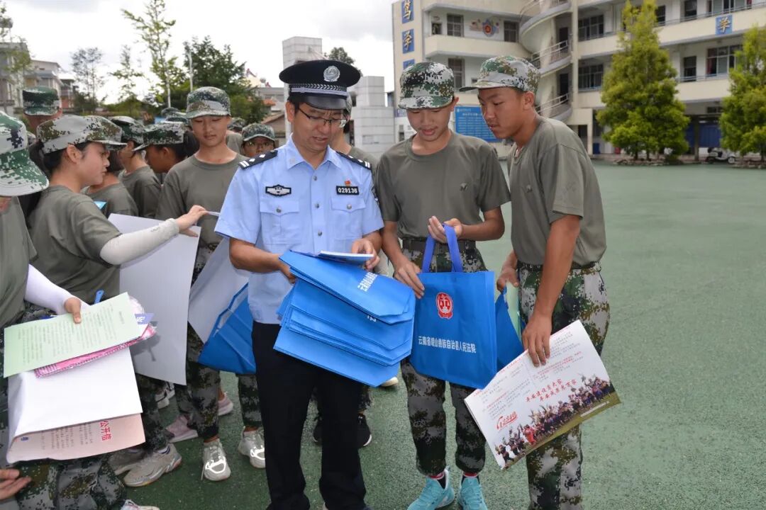 近日,峨山县各中小学陆续开学,为提高学校师生法制意识,9月14日,峨山县反恐办、峨山县公安局网安大队、禁毒大队、县委政法委借开学季学生集中军训的有利时机,到玉溪市民族中学开展法制宣传教育活动。