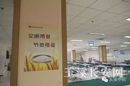 玉溪中院从小事抓起,在职工食堂入口处粘贴《文明餐桌倡议书》,并在餐厅内悬挂或在餐桌上摆放体现“文明用餐,节俭惜福”主题的宣传标识,以此来提醒就餐的干警及家属、工作人员能够做到理性消费、科学饮食、珍惜粮食、节约用餐。