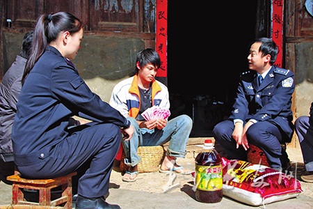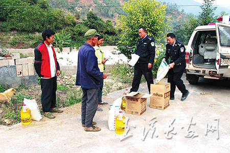 村民喜领慰问品 本网讯 近段时间以来,易门县公安局强化“立警为公、执法为民”思想,精心组织各所队室深入联系点——十街彝族乡老吾村委会,开展形式多样、内容丰富的“关注民生、寒冬走访送温暖”活动,让广大人民群众深切感受到党和政府的关怀。 老吾村委会地处易门县南部的高寒山区,距县城68公里,交通不便,村寨分散,偏僻边远,干旱缺水,自然灾害频繁,共有37个自然村、26个村民小组,总人口2168人,人均年收入不足400元,是该县较为贫困的地区之一。2013年12月初,易门县公安局巡警大队积极响应局党委号召,大队民警积极捐款,还购买了大米、大豆油共16套慰问品,于次日到十街乡老吾村委会侯地基和炉房两个自然村所联系的16户群众家中,将民警的爱心和党委的关怀送到群众手中,同时了解群众家庭生活情况,帮助制订生产计划,鼓励其增强信心,战胜困难。 1月2日,警务保障室民警走访了老吾村委会小黑箐村的侯平喜、普朝宝、侯增禄、侯增旺等7户村民,详细询问了村民生活近况,与联系户交心谈心,倾听其反映的主要困难问题和诉求。在小黑箐村,当得知离职村干部身患疾病多年,生活十分困难时,警务保障室严主任与两位老人拉起了家常,将全室民警捐赠的1300元现金送到两位老人手里,使老人深受感动,连声说谢谢。 1月3日,龙泉派出所民警深入农家小巷,分别到三元宫村、大营村、曾所村和江口村开展“关爱民生,寒冬送暖”走访慰问活动,将全所民警捐赠的1800元现金送给辖区内的5户老治保主任和治安积极分子家庭,为他们送去温暖和关爱。当天,法制大队民警带着用民警捐款购买的大米13袋、菜籽油13桶到挂钩联系村,慰问走访13户贫困户共43人。 1月4日,六街派出所民警把捐赠的1000元现金和一袋大米、一桶菜籽油送到百邑村父母先后病亡的特困家庭王斌家,帮他家解决燃眉之急。同时,走访辖区群众58户,征求意见建议12条,进行法律和安全防范宣传125人次,增强群众法律和安全防范意识,有效预防和减少案件发生,促进平安和谐建设。同一天,铜厂派出所所长、民警带着捐款及2床毛毯深入辖区柏树林和柏顺龙家,亲手将钱和毛毯交到他们手中,每到一家,民警都与他们拉家常,问寒问暖,问生产、生活经济收入,了解其所需所盼、目前急需解决的困难等问题,并帮助他们建言献策。 1月5日,浦贝派出所民警用捐赠的900元现金购买了5台烤火器、5桶菜籽油、5箱糕点,分别送到苗茂村、浦贝村、西冲村5户困难户家中,解其燃眉之急。 1月9日,治安管理大队党员干部围绕“听民声、知民情、解民忧、帮民富、暖民心”工作内容,深入到老吾村委会小黑箐村、马鞍山村、向阳村和李家村走访慰问17户“四群”教育联系户。慰问中,民警为每一户联系户送去一袋大米和一桶菜籽油,详细询问了联系户的身体和生活状况,并嘱咐他们平时生活中遇到困难及时向民警打电话。 截至2014年1月16日,全局共走访慰问困难群众294户,慰问现金30550余元、大米38袋、食用油23桶、衣物64件,发放各类宣传材料16500份,收集各类案件信息25条,发放《测评表》、《征求意见表》2300余份,倾听群众意见,为群众排忧解难,提供方便和做好事、办实事117件,让困难群众切实感受党和政府的温暖,强力营造公安机关爱民、亲民的浓厚氛围。通过入户走访,关心人民群众疾苦,为人民群众办实事、办好事、解难事,进一步凝聚了警心,鼓舞了士气,密切了警民关系,促进了警民和谐,推动了平安法制建设。(李学红 文/图) 编辑:李艾丽