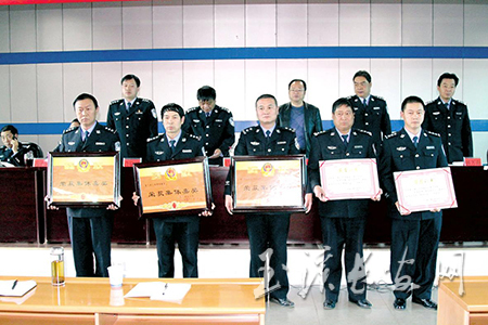 近日,在易门县公安局召开的公安工作会议上,2个先进党支部、12名优秀共产党员、3个先进集体、51名民警受到表彰奖励。(李学红 唐新华 摄)