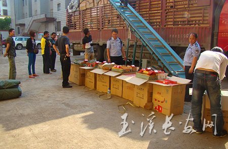 近日,峨山县公安局经侦大队联合县烟草专卖局工作人员,在一辆昆明驶往孟连的大货车上查获非法运输的成品香烟921条。 当天上午,峨山县公安局经侦大队获悉一辆从昆明驶往孟连的大货车可能存有非法运输成品卷烟嫌疑,并将从玉元高速公路过境峨山县,经侦大队民警立即联合县烟草专卖局工作人员上路设卡进行查缉。16时许,民警在玉元高速公路峨山服务区将一辆车牌号为云G51148的可疑红色大货车拦截住,当场从货车上混装的百货中查获伪装其中的“红山茶”、“红梅”香烟10箱,共计921条。 目前,案件已移交峨山县烟草专卖局处理。(罗树连 文/图) 来源:玉溪网 编辑:李艾丽