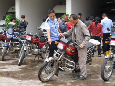 本网讯 (陈丽摄影报道)近日,红塔公安分局巡警大队举行退赃仪式,将在打击整治“两车”犯罪专项行动中追回的18辆被盗摩托车退还失主。 自4月20日开展打击整治“两车”犯罪专项行动以来,红塔公安分局巡警大队按照分局工作方案的要求,结合大队工作实际,在中心城区范围内开展打击盗窃摩托车、电动车犯罪专项整治行动。截至7月中旬,巡警大队民警通过堵卡查缉、日常巡逻、追踪调查等多渠道成功追回被盗摩托车18辆,经过逐一比对,已全部联系上失主。 在7月19日举行的退赃仪式上,巡警大队副大队长毛金东说,公安机关将坚决打击各类违法犯罪行为,尽最大可能挽回群众损失,同时向失主讲解了摩托车防盗常识,提醒大家提高防范意识。 编辑:李海燕