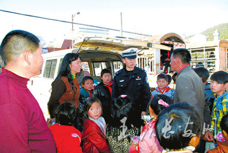 峨山县公安局交警大队寒假前夕进校宣传
