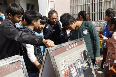 学生观看禁毒防艾图片展 近日,华宁县公安局禁毒大队联合各成员单位开展了2014年华宁县禁毒防艾宣传“流动课堂”启动仪式。 启动仪式上,华宁县公安局禁毒大队民警蒋凤文紧紧围绕“依法禁毒,构建和谐”的主题,把“合成毒品的危害”作为宣传重点,用一起起发生在我们身边的案例,给职中的老师、同学们上了一堂贴近华宁实际的禁毒知识讲座,并组织师生观看禁毒宣传展板,全面提升广大师生识毒、防毒、拒毒意识,最大限度地预防新吸毒人员滋生,减小毒品需求和危害。 启动仪式后,结合公安机关开展党的群众路线教育实践活动要求,禁毒防艾宣传“流动课堂”在全县各中学、社区陆续开展。禁毒防艾宣传“流动课堂”通过贴近基层、贴近群众、贴近易染毒高危人群,加强对相关部门的业务指导,主动送禁毒宣传资料上门,重点宣传冰毒等合成毒品的危害,宣传《中华人民共和国禁毒法》、《戒毒条例》和《云南省戒毒规定》,同时向广大人民群众宣传向公安机关举报毒品违法犯罪的途径和方法,切实发动群众支持参与禁毒斗争,为深入推进第三轮禁毒人民战争奠定良好的基础。(蒋凤文 李洋 文/图) 来源:玉溪网 编辑:何亚