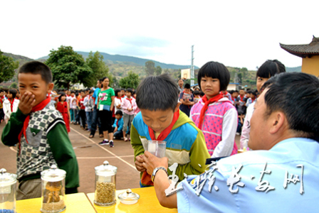 峨山县公安局禁毒大队警官以冰毒样品为教材,警醒同学们面对毒品要坚决说“不”。 (杨映光 摄) 在6月26日国际禁毒日到来之际,我市社会各界组织了形式多样、内容丰富的宣传活动,进一步扩大了禁毒宣传教育覆盖面,提高了全民禁毒防毒意识及抵御毒品的能力。 日前,峨山县公安局禁毒大队联合甸中镇综治办组织干警深入学校、集市、村组等,开展禁毒知识宣传教育活动。民警通过举行禁毒宣传讲座、发放资料、“面对面零距离”等方式,向人民群众讲解毒品的种类和危害,普及禁毒知识,营造了浓厚的禁毒氛围。 6月23日晚,新平县公安局抓住县城群众茶余饭后常到民族广场散步跳舞的时机,牵头组织禁毒委各成员单位到民族广场开展禁毒宣传活动。作为此次宣传活动的主力军,县公安局禁毒大队民警与其他部门工作人员和禁毒志愿者一起上阵,通过悬挂禁毒宣传横幅、摆放禁毒展板、发放禁毒宣传材料、设立宣传咨询台、驾驶宣传车滚动播放禁毒防毒常识等形式,热情向来往群众介绍什么是新型毒品、新型毒品的危害、怎样远离新型毒品、怎样预防新型毒品,并利用鲜活典型案例,讲解常见毒品的种类、毒品的危害和如何预防毒品等禁毒防毒知识。此外,新平县者竜乡、平掌乡、新化乡、水塘镇、漠沙镇等乡镇也以多种形式开展了宣传活动。 6月25日,由华宁县委依法治县办牵头,华宁县委宣传部、公安局等24家单位在县城集中开展“6·26”国际禁毒日暨 “六月法制宣传月”宣传活动。宣传现场设置了咨询台、悬挂宣传布标、摆放宣传展板,各部门工作人员走上街头,就什么是毒品、新型毒品的种类、毒品对家庭对社会的危害、如何抵御毒品的侵害以及禁毒法律法规等知识进行了讲解,受到了过往群众的好评。此前,华宁县禁毒委还组织部分成员单位到五个乡镇(街道)开展了为期五天的禁毒知识集中宣传活动,扩大了禁毒宣传的覆盖面和影响力。(特约通讯员 陈猛 通讯员 杨映光 陈志莲 李艳) 编辑:李海燕