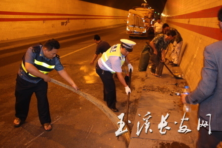事故发生后,相关工作人员积极处置,力争在最短的时间恢复通行,让抗震救灾车辆能顺利通过。 10月7日23时58分,昆磨高速发生货车侧翻事故,导致抢险救灾通道被阻,预计要1个半小时才能恢复通行。为保证普洱救灾车辆的通过,玉溪交警仅用半小时就抢通了道路。 10月7日23时58分,在昆磨高速公路下行线元江2号隧道发生小货车侧翻事故,造成道路不能通行。为了打开驶往普洱方向救援车辆的救援通道,玉溪高速交警大队紧急处置,与施救力量一起,加快抢通速度。10月8日00:30,抢通一条车道供车辆通行;00:50,道路全面抢通,恢复正常通行。为全力确保大通道的安全畅通,玉溪高速交警大队对昆磨高速公路实行24小时巡控,一旦发生事故,立即进行紧急处置。此外,按照上级部门要求,玉溪交警支队迅速调派2辆开道车、4名民警紧急护送抢险救灾物资车辆进入灾区。 据了解,普洱景谷发生地震后,玉溪交警支队高度重视,立即启动应急响应,及时下发《关于做好普洱市景谷地震应急工作的紧急通知》,要求全市各交警大队迅速做好地震应急工作,加强值班备勤,并加强对过境道路,尤其是通往灾区道路的巡逻管控,保证道路畅通,确保抢险救灾车辆安全顺利通过。(通讯员 李佳 王天才摄影报道) 编辑:李海燕