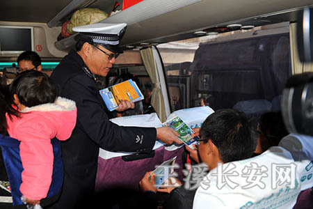2月15日上午,玉溪市公安局交警支队与云南省邮政公司玉溪分公司联合在玉溪中心客运站举行《玉溪市交通安全行车手册》(以下简称《手册》)首发仪式,助力全市2015年春运交管工作。交警支队、云南省邮政公司玉溪市分公司相关领导,全市出租、公交、客运公司、客运站、驾校等17家单位代表,以及交通安全志愿者参加了当天的首发仪式。 《手册》按春、夏、秋、冬四个季节交通安全行车特点进行有针对性策划和制作,全年制发12万册,内容涵盖四季道路交通行车安全特点、交通安全小常识、文明出行理念、事故警示案例等内容,由交警部门负责编写、收集内容,交由玉溪邮政设计制作成册,通过交警、邮政部门宣传渠道向社会发放,旨在切实加大交通安全宣传力度,唤起群众对出行安全的重视,广泛传播文明交通理念,保障群众生命财产安全,打造玉溪市又一行之有效的全新宣传平台。活动呼吁参与公共交通的单位、个人携起手来,为群众筑起一道牢固的交通安全生命线。《手册》不仅将经过交管部门的传统宣传渠道,还将重点通过玉溪邮政所辖的报刊发行、物流快递、营业网点等渠道向全社会广泛发放,最大限度扩大交通安全宣传直接覆盖面。目前,3万份春季册已投向社会进行免费发放。 随后,参加首发仪式的领导向现场企业、驾校、志愿者代表赠送了首批印制的《玉溪市交通安全行车手册》春季册,并同交通民警、交通安全志愿者一道前往中心客运站候车大厅、发车区域以及出租车乘车点发放宣传手册,与驾驶人、乘车返乡旅客面对面交流,宣传春运安全驾驶注意事项,安全乘车应知应会等相关内容。 活动当天共摆放宣传展板20块,发放《玉溪市交通安全行车手册》春季册等宣传资料3000余份。活动现场交通安全关爱温暖人心,获得群众一致好评。 来源:云南警方 编辑:李海燕