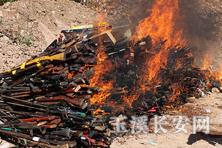 销毁涉枪涉爆物品 12月1日,在省公安厅治安总队领导的督导下,我市缉枪治爆专项行动指挥部在新平县仙福集团钢铁公司集中统一销毁了一批涉枪涉爆物品。 今年以来,我市缉枪治爆工作在各级缉枪治爆指挥部成员单位的共同努力下,全力消除涉枪涉爆隐患。市、县(区)缉枪治爆指挥部严格按照中央、省关于深化缉枪治爆斗争的决策部署,紧紧围绕反恐维稳大局,坚持专项整治与长效建设相结合,突出重点与整体防控,采取集中清查收缴、边界查控堵截、贩运渠道查缉和网上清理整治、重点地区整治、重点领域整治等“三查三治”六项举措,严厉打击涉枪涉爆违法犯罪,坚决遏制枪爆犯罪活动,最大限度地消除了各类枪爆安全隐患,有力维护了我市社会治安大局稳定。市、县(区)公安机关坚持公秘结合、专群结合、网上网下结合,组织对涉枪涉爆重点区域、重点部位、重点渠道、重点单位、重点人员进行全面清查;采取滚动排查、网上清查、调查研判、联控联查、安全检查等举措,积极开展工作;各级缉枪治爆指挥部广泛宣传发动,及时发现、清查收缴流散社会的非法枪爆物品,严密防范、严厉打击涉枪涉爆犯罪活动,缉枪治爆工作取得了辉煌战果,先后收缴各类枪支1192支、子弹28323发、炸药13567.3公斤、雷管23573枚、索类爆炸品2546米、炮弹8发、手榴弹9枚、地雷8个、仿真枪120支、炮弹配件2039件、管制刀具1443把、剧毒化学品119.85公斤、易制爆化学品1.5公斤、烟花爆竹1273件、礼花弹32953枚,办理涉枪涉爆案件53起,打击处理53人。 此次集中统一销毁的涉枪涉爆物品有改装射钉枪920支、火药枪188支、仿真枪197支、猎枪4支、气枪252支、彩弹枪8支、仿制式枪3支、钢珠枪2支,各类报废公务用枪288支,各种管制刀具13715把。(钟明亮 陈猛 雷波 文/图) 编辑:李海燕