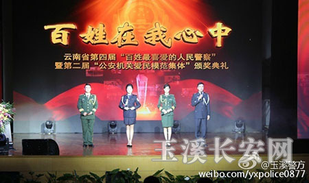 12月7日,云南省第四届“百姓最喜爱的人民警察”暨第二届“公安机关爱民模范集体”颁奖典礼在云南警官学院举行,玉溪市公安局通海县公安局秀山派出所获评“公安机关爱民模范集体”,新平县公安局戛洒派出所社区民警李鉴洲获得“百姓最喜爱的人民警察”提名奖。