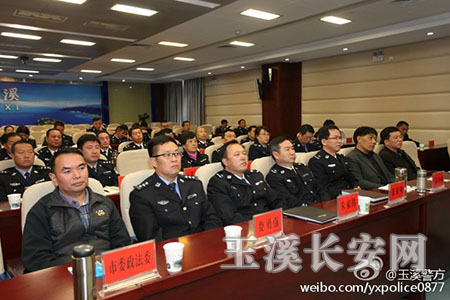 当天,玉溪市公安局党委成员,市委宣传部、市委政法委、市人力资源和社会保障局领导,市公安局各部门主要负责人以及民警代表在玉溪分会场收看了本次颁奖典礼。  此次“双评”活动由省委宣传部、省委政法委、省人力资源和社会保障厅、省公安厅联合举办。活动坚持“公开、公平、公正”和“最大限度地把评判权交给人民群众”的原则,从5月份开始推选至10月份结束。经推选、初选、公选、评审、公示、表彰阶段,评选出的30名候选人和20个单位分别来自全省各地公安机关的不同警种,是全省人民警察和公安机关的先进代表。