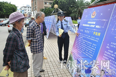 在评选过程中,玉溪市公安机关先后在玉溪市聂耳文化广场、通海县“聚奎阁”景点、新平县“民族”广场等人流量较大的场所集中开展“双评”推介活动,向广大市民积极推介入围本次“双评”活动的候选人(单位)先进事迹,让更多群众了解、关注和支持“双评”活动。 来源:玉溪警方微博 编辑:李海燕