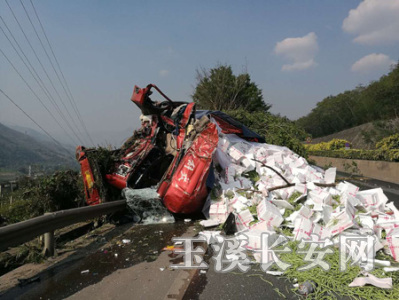 2017年2月23日10时35分左右,昆磨高速公路玉溪路段上行线(景洪往昆明方向)K219+400米处一辆号牌为渝P7C587的大货车失控发生侧翻,拉载豇豆散落路面,占据行车道,造成驾驶员连某及车上乘客受伤,货物、车辆、路产等损失近30万元,交通中断4小时。