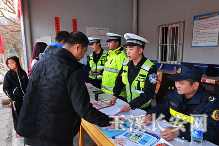 通建高速公路是连接玉溪市和红河州最便捷的通道。春节期间,私家车、客运班车、微型面包车往返频繁,检查这些重点车辆,杜绝超员超载等违法行为成了通海五山交警执法站执勤人员的首要工作。通海交警每天分三班,安排警力开展登车检查、逐车登记、宣传提示、便民服务,确保道路安全有序。