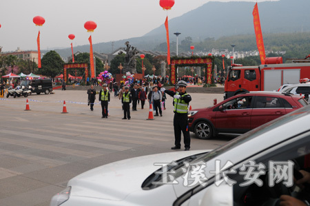 开幕当天,澄江交警共出动警力30人、警车6辆,疏导车辆8000余辆次,全体参战人员克服安保时间长、气候炎热等困难,定责定岗,坚守一线,强化管控,有效保障了现场道路安全、畅通。
