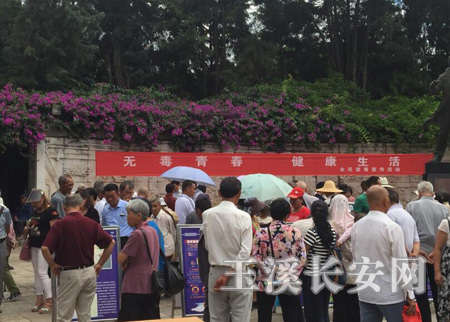 为进一步加强毒品预防教育工作,不断增强全民识毒、防毒、拒毒意识,切实维护社会和谐稳定,提高人民群众安全感,创建平安街道。6月23日下午,玉兴司法所积极联合派出所、街道综治办、社会保障服务中心、妇联及文化社区等部门在聂耳公园联合开展“6.26”集中禁毒宣传活动。此次宣传活动以“无毒青春,健康生活”为主题,宣传活动经过精心筹备,悬挂横幅、向群众散发宣传单、滚动播放大屏、展板展示、电视广播、设立法律咨询台接受群众咨询等形式多种多样。宣传中,司法所工作人员及社区民警走进社区和群众中,就吸毒对人体健康、家庭、社会的危害等方面知识进行了宣传讲解,耐心解答群众的疑问和咨询。