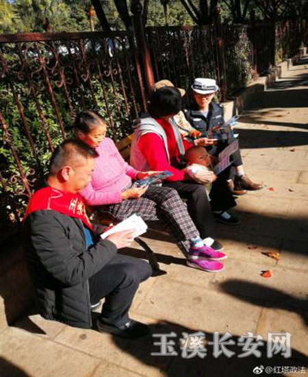 在宪法宣传日即将到来之际,葫田社区联合区委政法委、玉溪市交警支队直属大队率先开展法制宣传活动。11月29日下午,由社区、区委政法委、市交警直属大队工作人员组成的宣传小组到葫芦集贸市场路口展开“12.2交通安全日”宣传,讲解交通规则,发放交通安全宣传资料,对不遵守交通规则的人进行劝导。之后,又到红塔文体活动中心门口摆开宣传摊点,进行扫黑除恶、国家宪法日主题宣传,共开展讲解200余人次,发放宣传资料2000余份 。