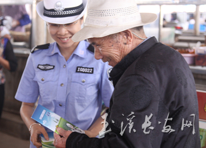 近日,红塔交警大队组织民警以“关爱生命、文明出行”为主题,结合大队辖区交通特点、城郊居民以电动自行车为主要出行方式等实际,走进红塔区高仓社区集贸市场,围绕文明骑车、安全文明出行和乘车等,向周围群众宣讲交通安全知识。(通讯员 陈首名 摄)