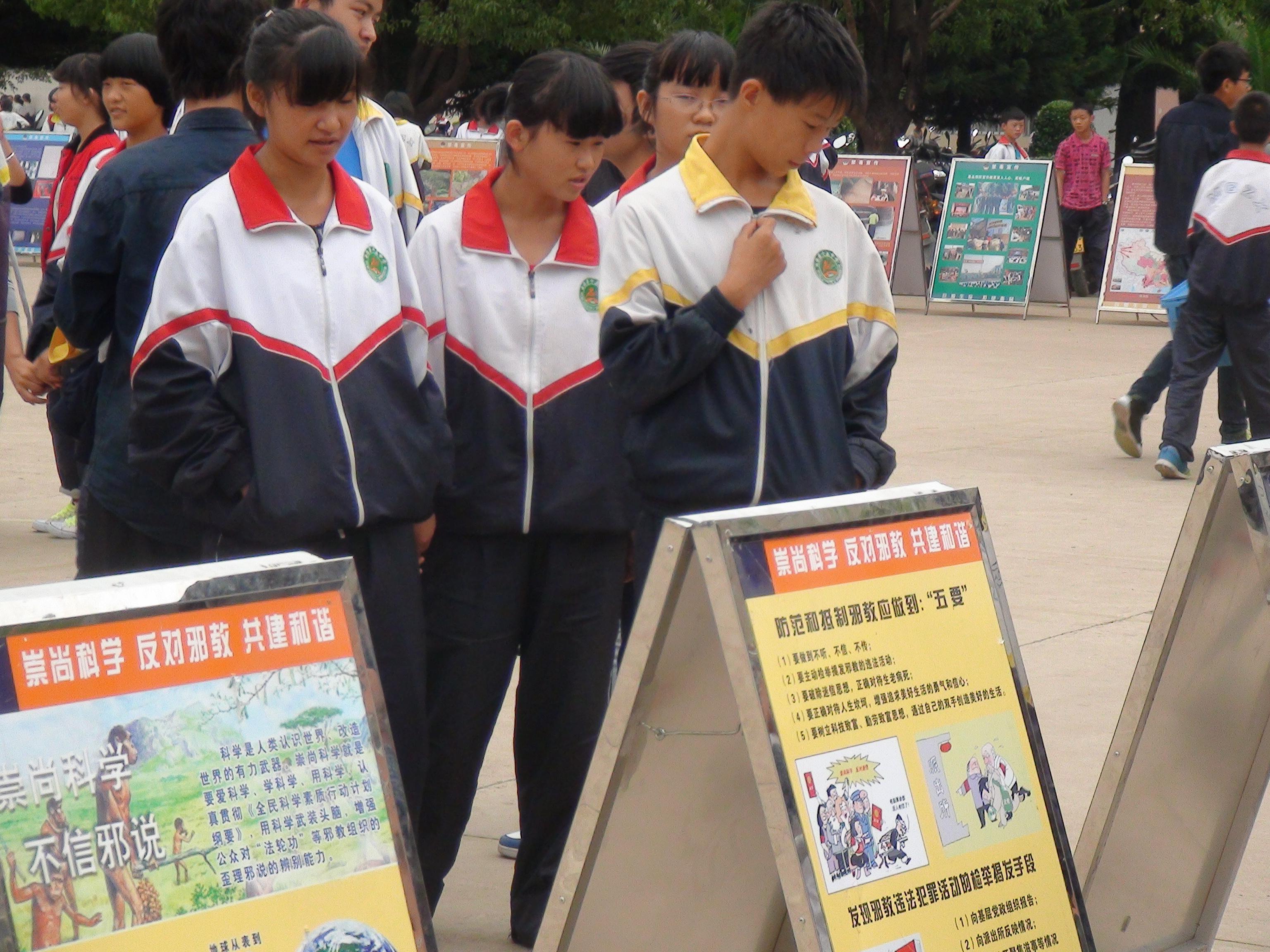 为了进一步认清邪教组织的本质与危害,增强学生的反邪教的意识,6月13日春和司法所、派出所、综治办在春和中学开展‘反邪教’宣传活动。活动通过让学生观看反邪教展板,发宣传单以及现场向学生讲解‘什么是邪教?邪教的危害’等基本常识,让每一个学生认识到邪教的危害,真正成为“抵制邪教,构建和谐,从我做起”的小公民。