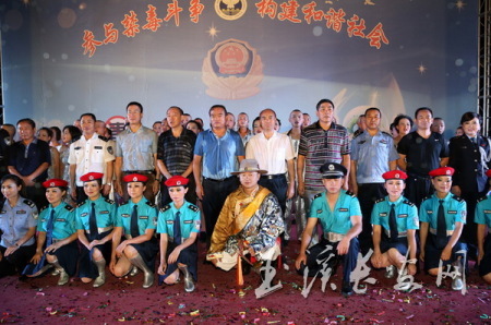 为进一步深化禁毒宣传力度,巩固禁毒工作成果,省第三强制隔离戒毒所、市禁毒委、区禁毒委以“禁毒宣传月”为契机,于6月16日晚联合在玉溪第二职业高级中学室外篮球场举办以“参与禁毒斗争,构建和谐社会”为主题的禁毒专题文艺演出。市、区两级人大、政协、禁毒委领导,省第三强制隔离戒毒所领导,市、区禁毒委成员单位领导,红塔区各乡(街道)领导以及玉溪第二职业高级中学师生和社会各界群众共4300余人观看了演出。红塔区副区长、区禁毒委主任曾逵做了动员讲话。