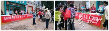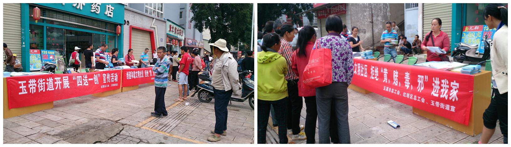 为进一步推进“家庭拒绝邪教”宣传教育活动的深入开展,减少邪教活动对社会政治稳定带来的干扰破坏和负面影响,切实加强源头治理,增强反邪教宣传教育的针对性和有效性,在红塔区总工会的大力支持下,玉带街道社管综治办联合玉带街道工会、司法所等部门于8月19日上午在中卫社区开展了“四送一创”(暨:送科普知识进家、送防邪知识进家、送健康知识进家、送关心关爱进家、创平安家庭)宣传教育和创建和谐文明社区,拒绝“黄、赌、毒、邪”进我家活动。