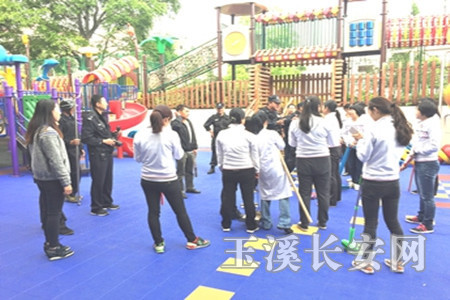 为进一步加强社区维稳工作的推进,切实做好幼儿园反恐怖防范应急工作,确保社区内幼儿园师生安全,玉湖社区在2015年4月24日联合玉兴路派出所、玉溪市二幼分院合作开展“社区幼儿园反恐应急演练活动”。