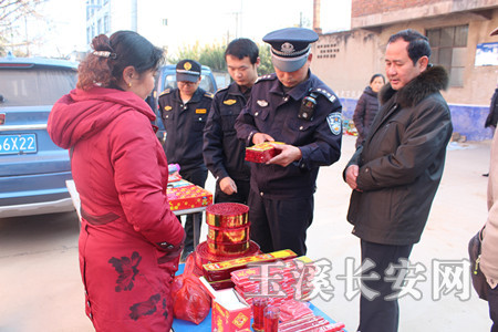 春节临近,烟花爆竹迎来销售旺季,为切实消除安全隐患, 2月12日,玉溪市公安局红塔分局李棋派出所联合街道安委会、工商等部门联合执法、进一步规范烟花爆竹的储存和销售,保障春节、元宵节期间辖区人民群众生命财产安全。
