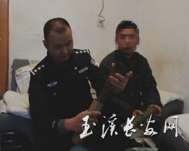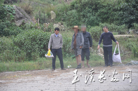 民警便衣巡查现场收缴捕鸟而归的村民所带的捕鸟工具