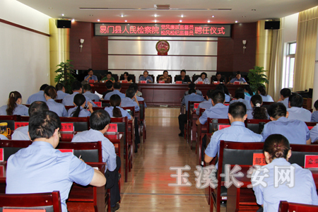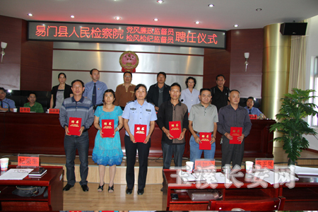 本网讯 为不断加强党风廉政勤政建设和反腐倡廉工作,强化对检风检纪及执法办案活动的外部监督力度,9月29日,易门县人民检察院举行党风廉政监督员、检风检纪监督员聘任大会。聘任易门县人民法院纪检组长潘如生、易门县公安局政工监督室副主任高正凤、易门县司法局基层管理股股长施丽英为我院的党风廉政监督员;聘任易门县人大常委会法工委主任杞荣生、易门县政协委员会科教文卫体委主任王国俊、易门县总工会常务副主席陈天一为我院的检风检纪监督员,任期5年。玉溪市人民检察院纪检组领导,县人大、县纪委、县公安局相关领导及全院干警参加聘任仪式。