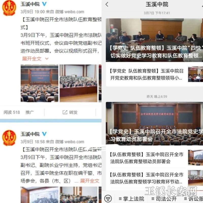 自3月8日玉溪市政法队伍教育整顿动员部署后,玉溪市、县(市、区)两级党委政法委,市中级法院、市检察院、市公安局、市司法局闻令而动,统一思想认识,层层再动员,牢牢把握重点任务,大力营造氛围,多措并举开展学习教育环节各项工作,全面推动政法队伍教育整顿有序进行。