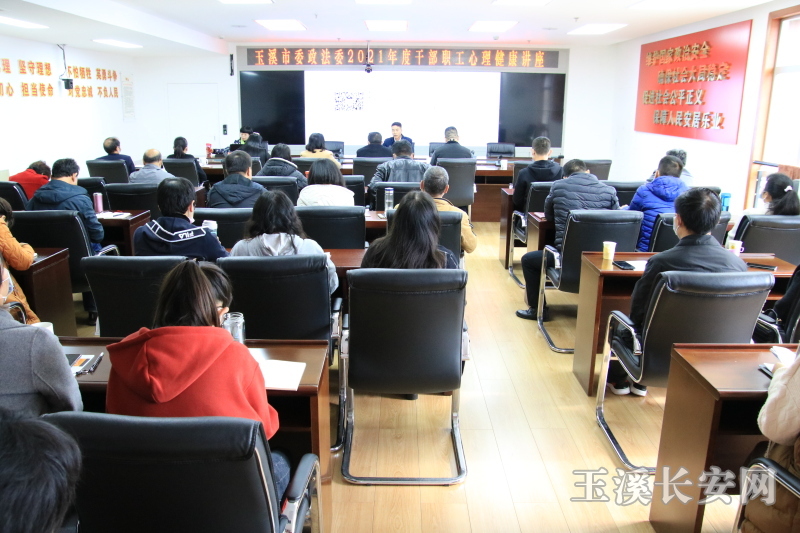 为普及心理健康知识,增强机关干部职工自我心理保健能力,提升身心健康水平,有效缓解工作压力,保持健康积极心态,11月15日,市委政法委机关邀请了玉溪市第二人民医院杨顺英心理健康专家,给机关全体干部职工作了专题心理辅导讲座。